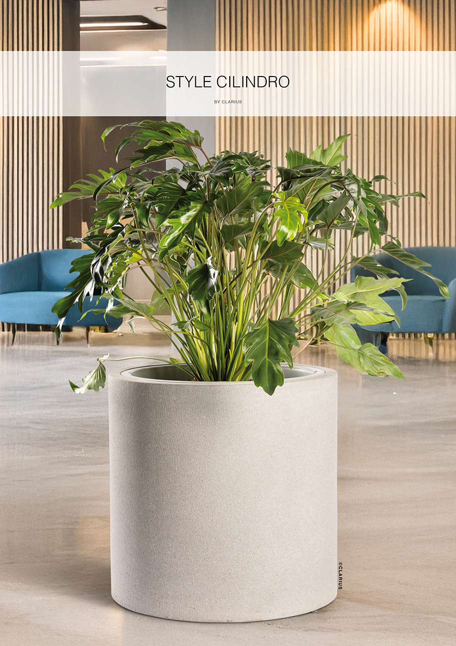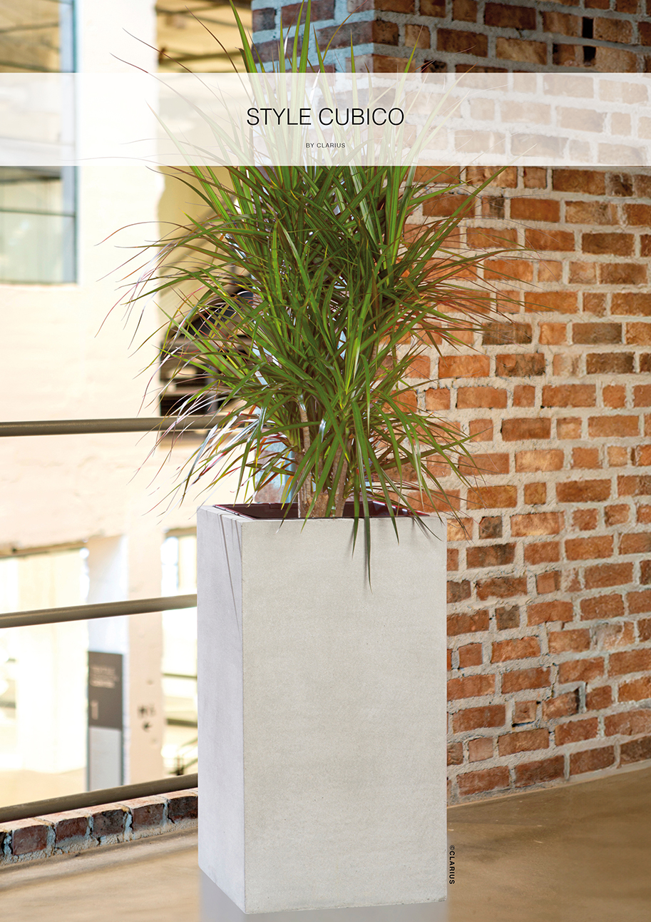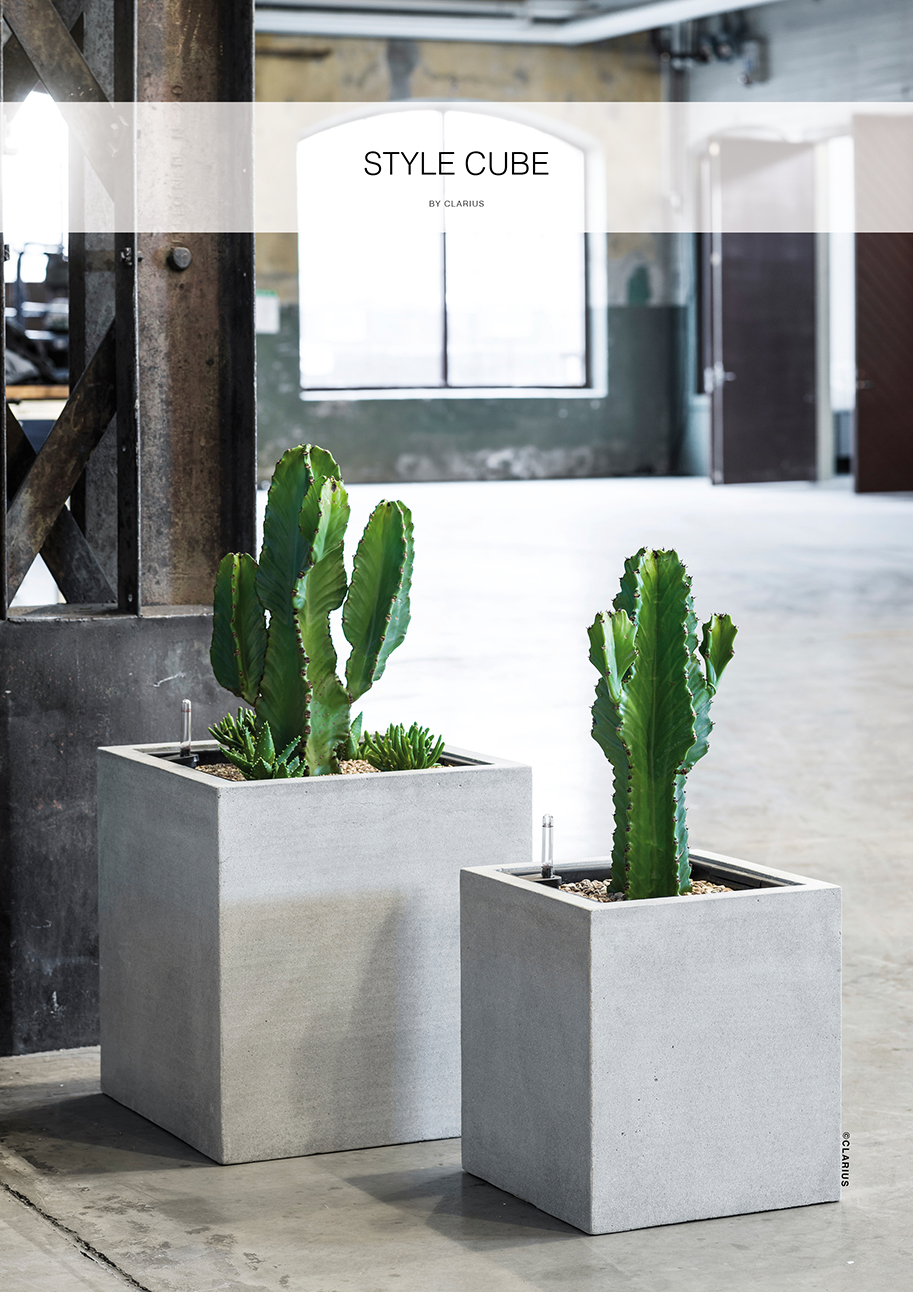 Stram form med en strukturerad yta skapar intressant kombination. Den nya tidens betongkruka i en blandning av lättbetong och fiber. Anpassad för innerkruka och bevattningssystem. För mer information se produktbeskrivning under repektive artikel.
