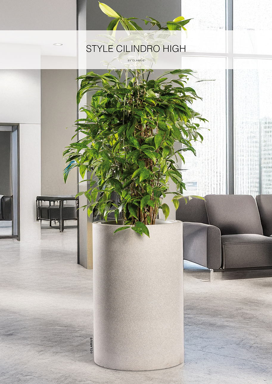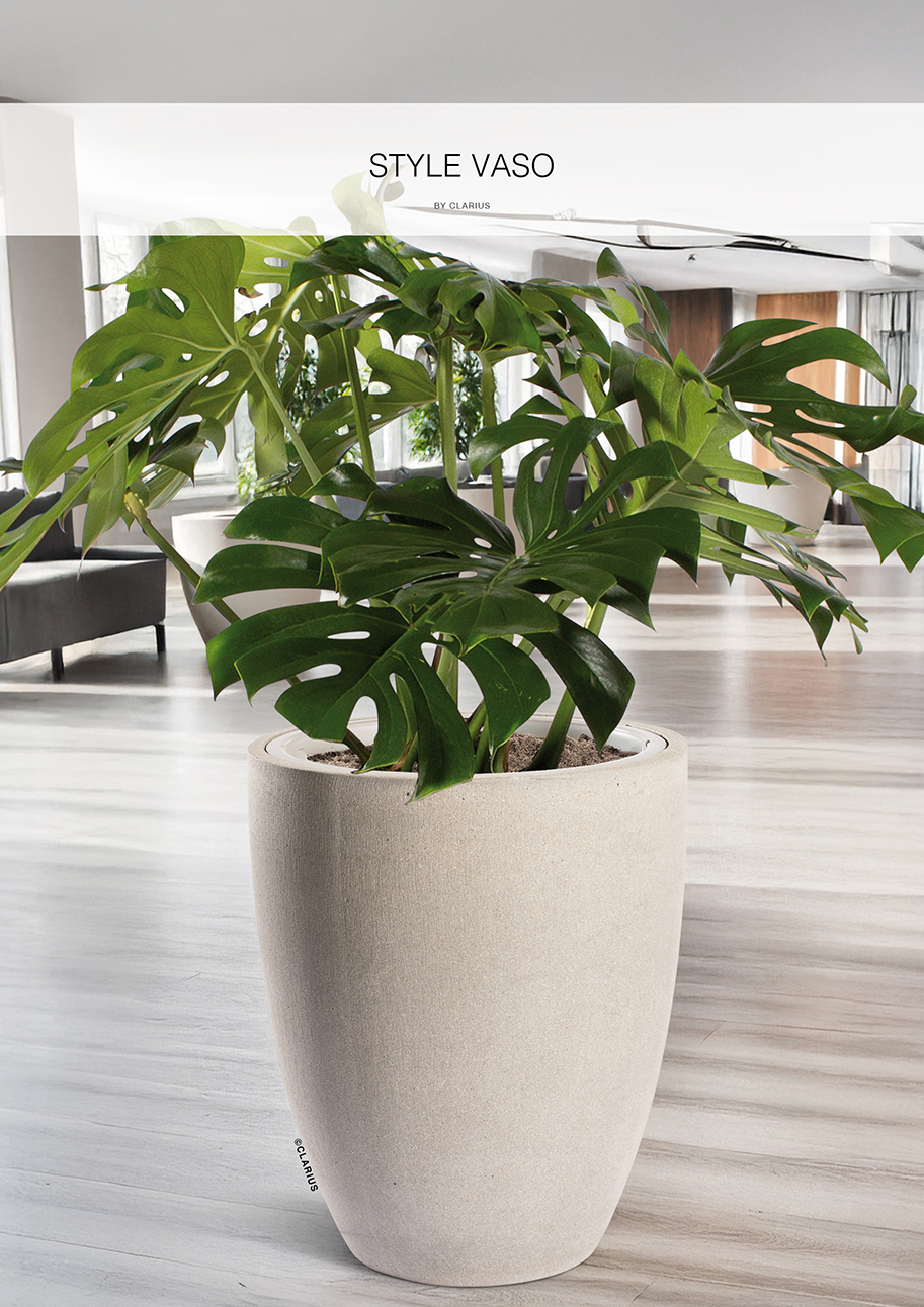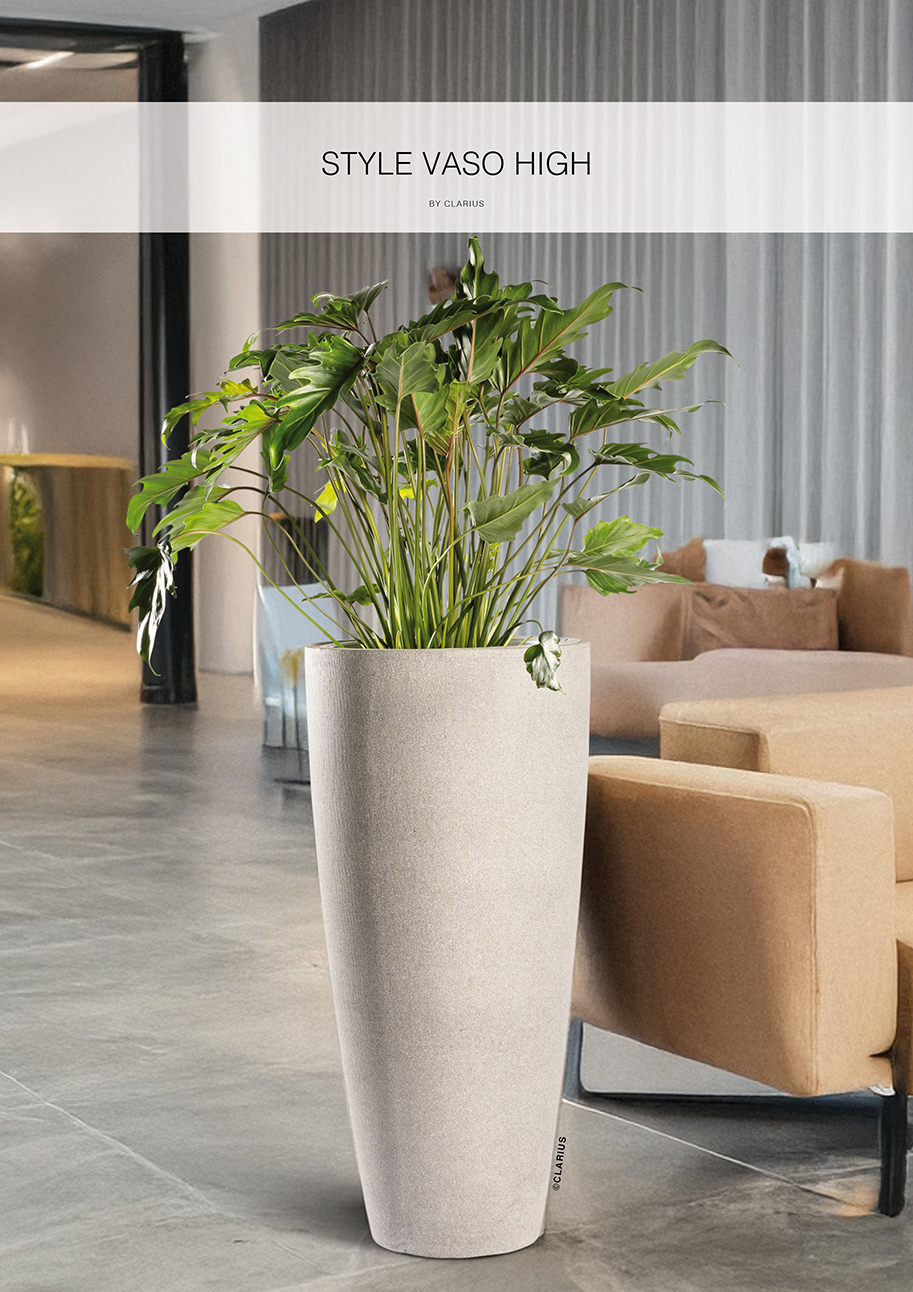 Stram form med en strukturerad yta skapar intressant kombination. Den nya tidens betongkruka i en blandning av lättbetong och fiber. Anpassad för innerkruka och bevattningssystem. För mer information se produktbeskrivning under repektive artikel.